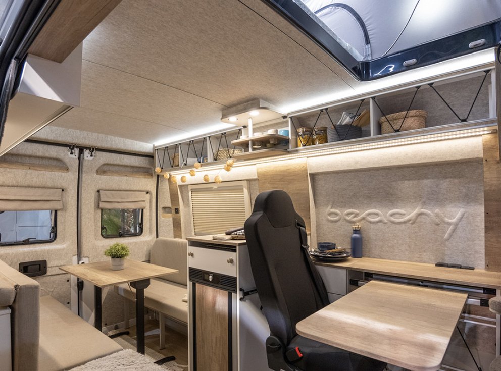 Beachy zachwyca nie tylko wyjątkowym poczuciem przestrzeni. Także jego wielofunkcyjność spełnia wszystkie oczekiwania. Siedzenia o zmiennym zastosowaniu sprawiają, że beachy jest idealnym towarzyszem w każdej sytuacji. Twórczość nie ma prawie żadnych ograniczeń. Różnorodne możliwości spania, składany stół lub wiele modułowych detali pozostawiają pole do popisu dla kreatywności.